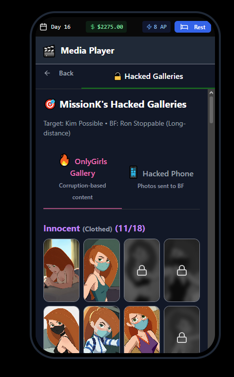 - Corruption-based unlocking - Higher corruption = more explicit content